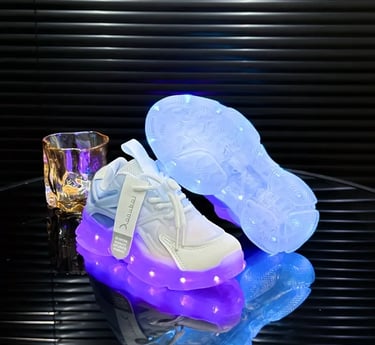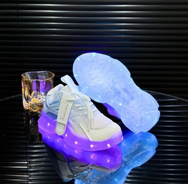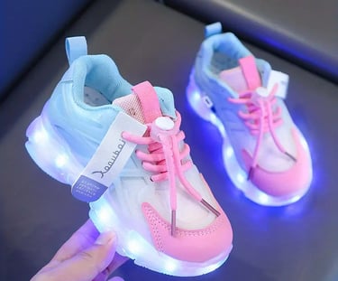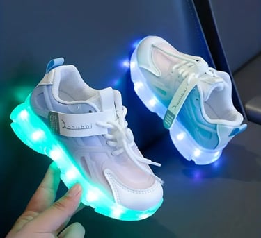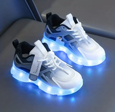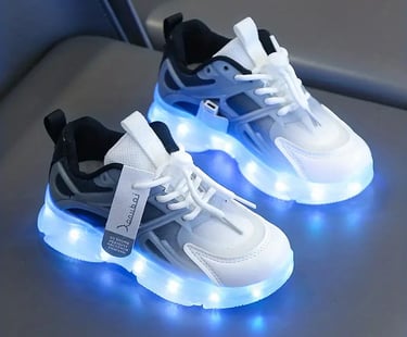 Sixteen Mode Color Changing LED Light Shoes - Glittery Striped Low-Top Sneakers for Boys and Girls - Lightweight, Buckle Closure, TPR Sole, and Cartoon Design