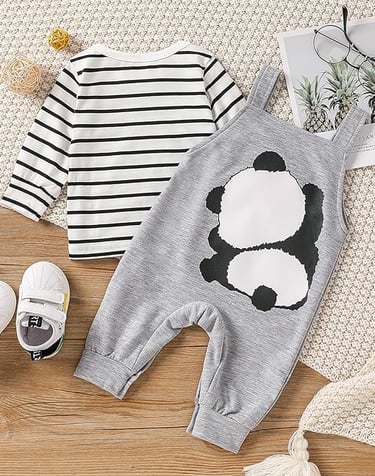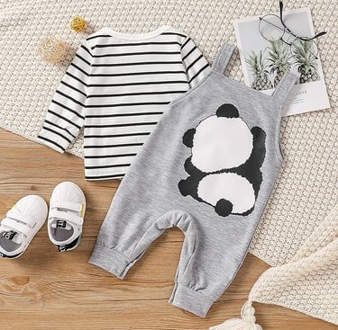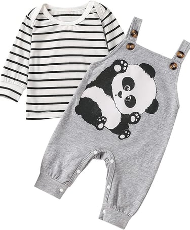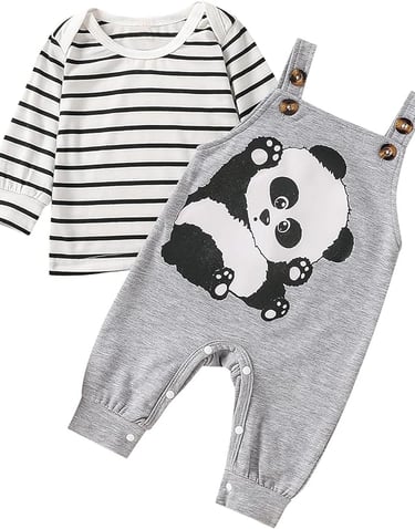 Baby Girls Boys Clothes Set Infant Kids Panda Romper Striped Long Sleeve T Shirt Top Overalls Suspender Pants 2 Pcs