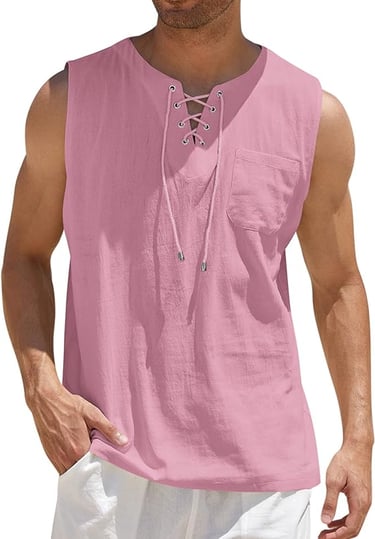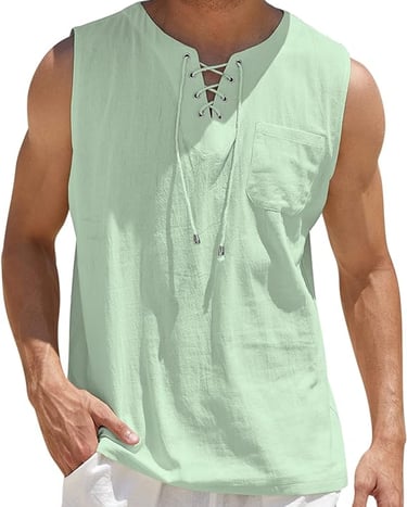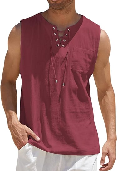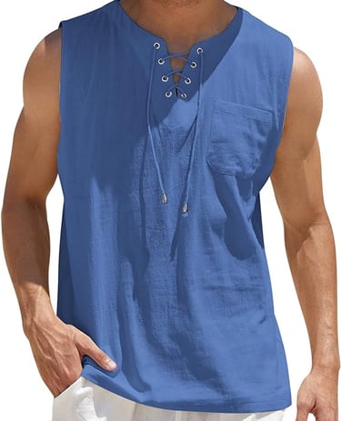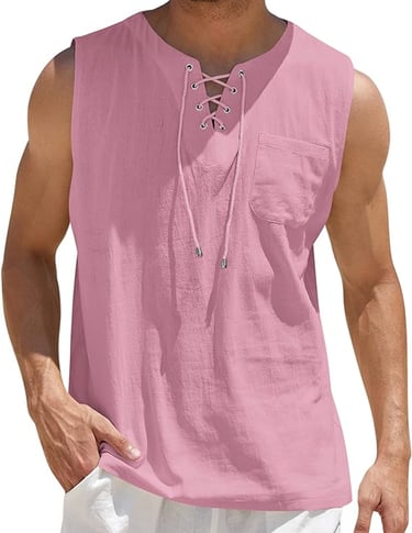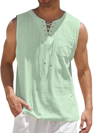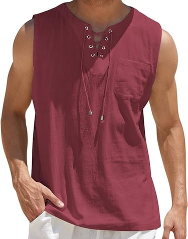 COOFANDY Men's Cotton Linen Tank Top Shirts Casual Sleeveless Lace Up Beach Hippie Tops Bohemian Renaissance Pirate Tunic