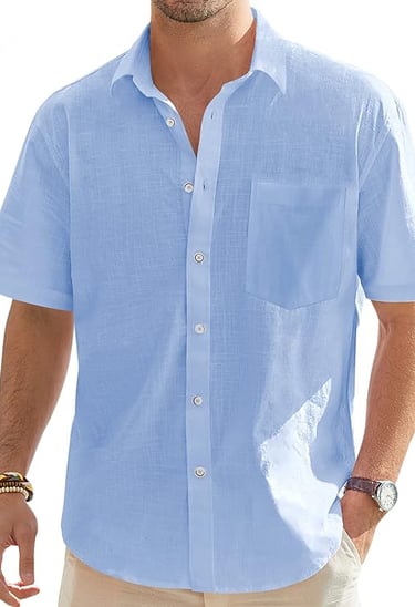 J.VER Men's Cotton Linen Short Sleeve Shirts Casual Lightweight Button Down Shirts Vacation Beach Summer Tops with Pocket